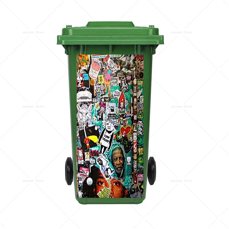 Art Graffiti Trash Can Sticker Kitchen Trash Can Waterproof Decoration Sticker Design Wallpaper Poster Cabinet Closet Stickers