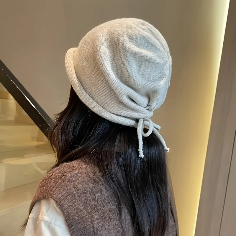 Autumn Winter Drawstring Adjustable Knit Hat Fashion Retro Street Wear Accessories Gift For Girlfriend Windproof Cold Proof Warm