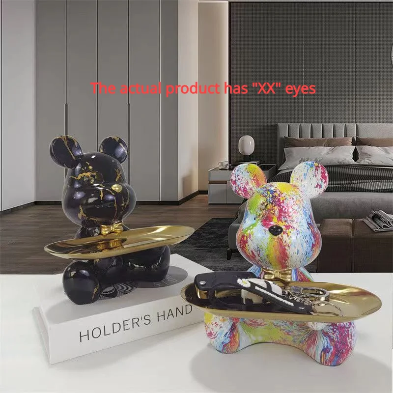 Graffiti Bear Figurine Home Decoration Animal Statue Keys Candy Storage Shelf Modern Room Sculpture Table Decor Statues Ornament