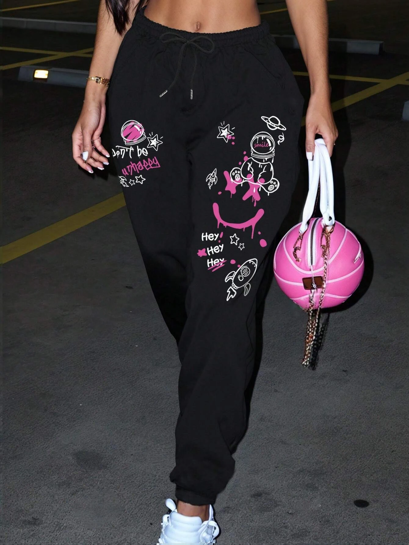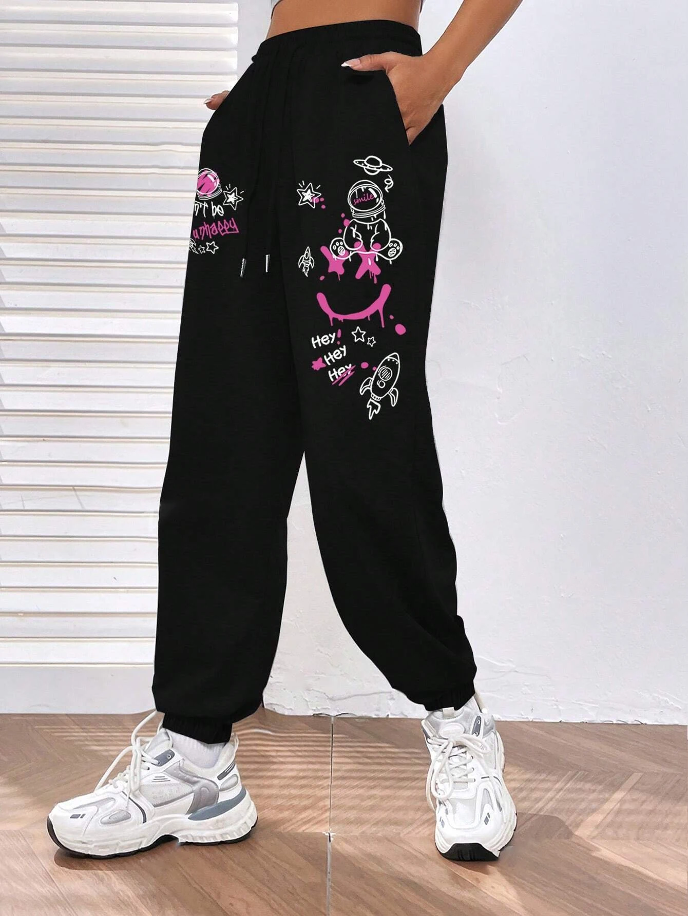 Women's Casual Graffiti Printed Sweatpants For Everyday Wear Versatile Pocket Drawstring Trendy Street Pant Female Autumn Winter