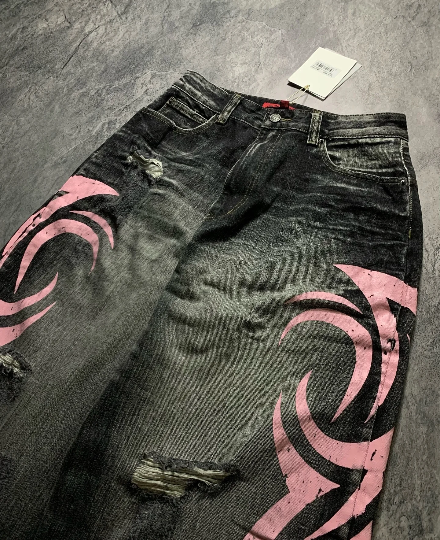 Y2K Harajuku Graffiti Punk Style Print Gothic Jeans Men And Women Loose Hip Hop Straight Pants High Street High Waist Jeans